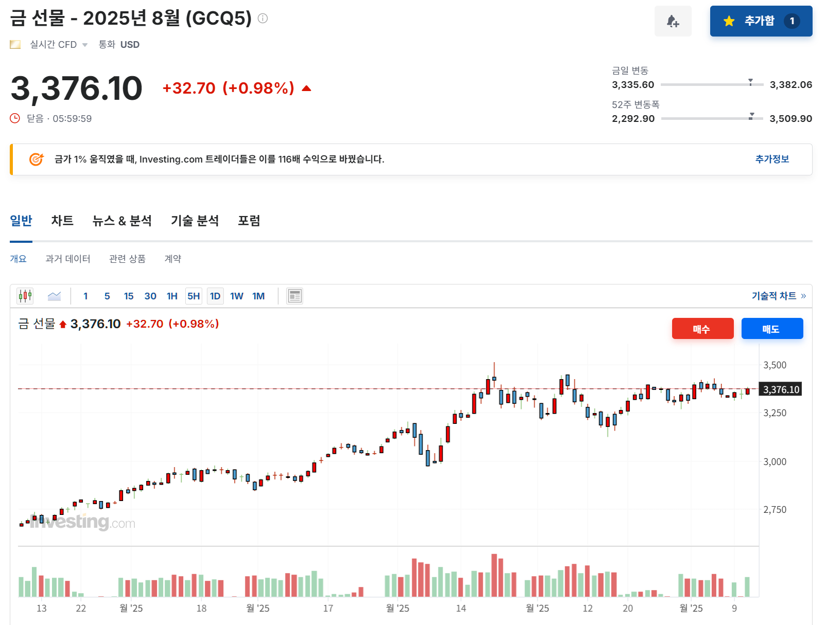 - 금(Gold): 3,376.10달러 (+0.98%) ⟶ 미 CPI 발표 앞두고 인플레이션 헤지 수요 유입