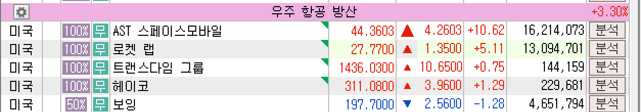 우주항공 섹터에서는 AST 스페이스 모바일, 로켓랩이 좋은 흐름이 나타났습니다.