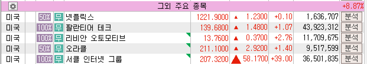 - 통신/미디어: 구글(GOOGL -1.50%), 메타(META -0.21%) 약보합, 넷플릭스(NFLX +0.13%) 강보합