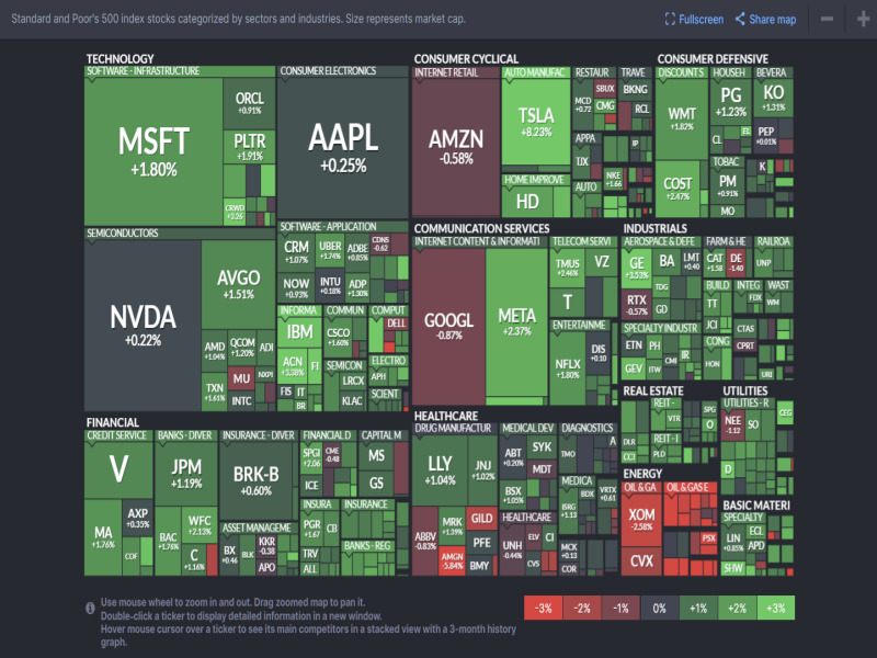 - Technology (기술주): 혼조 – MSFT +1.80%, NVDA +0.22%, AVGO +1.51%